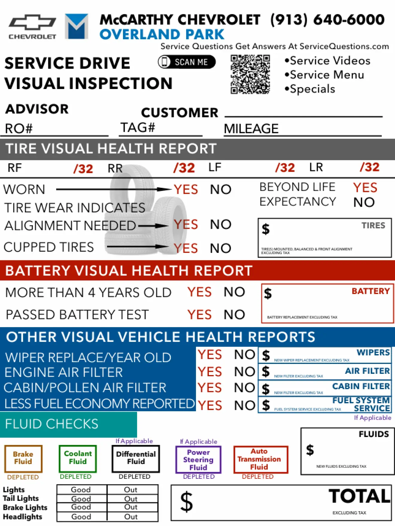 Plus inspection sheets include a QR Code with service videos explaining common maintenance services and service video library on the benefits of different recommended maintenance services