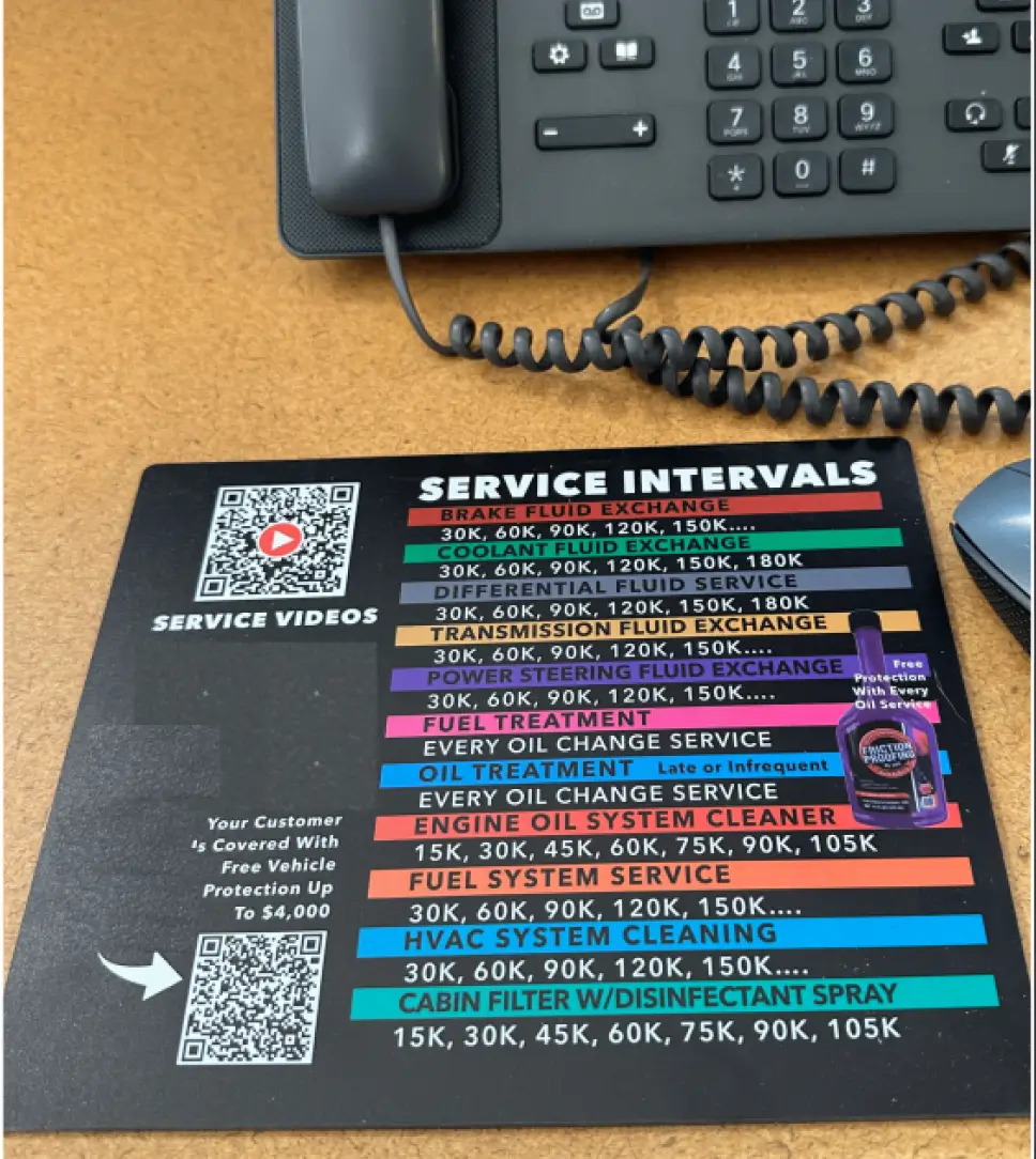 The advisor mouse pads also have a QR with videos of those services to share with service customers in person or with a text message.